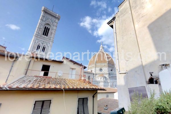 The apartment is composed by an outdoor leaving room on the private terrace of 15 meters square (160 ft square) with a new flooring mabe by teak wood; a bedroom with a double size memory foam mattress with 4 pillows, the bedroom has a window overlooking the Tower of Giotto (part of the first Cathedral of Florence, call Santa Maria del Fiore); an en suite bathroom with a rain shower, shower box, sink, bidet and a hair dryer (shamppo, shower gell, shower cap and vanity set at your disposal); a living room with a sofa, table and a led tv and a second terrace on the backyard with a washing machine. The kitchenette is fully furnished with a taditional Moka espresso machine, Kettle and toaster. The apartment is located on the 4th floor with no elevator. However, we can provide a porter service if you need it. Guests interested should tell me ahead of time. The Neighborhood - San Giovanni LoveTheRoof is 1 minute from the Duomo and many other historical sites located in the city center. Guests don't need to take any bus to reach the places of interest in Florence. Just outside the city center, I suggest you to visit Fiesole. It's too far to walk there, so I suggest you reach it with the bus number 7 from Piazza San Marco. CAR ACCESS: NON-RESIDENT and TOURIST ACCESS Non-authorized cars are prohibited from driving within the ZTL at the following times: Monday to Friday, from 07:30 a.m. to 8 p.m. Saturdays from 07:30 a.m. to 4 p.m. PRIVATE GARAGES (EUR 20/25/30 per day, depending on the car size) give you the possibility to enter and park your car there. GARAGE VERDI: Via Giovanni da Verrazzano, 9 - 50122 Firenze