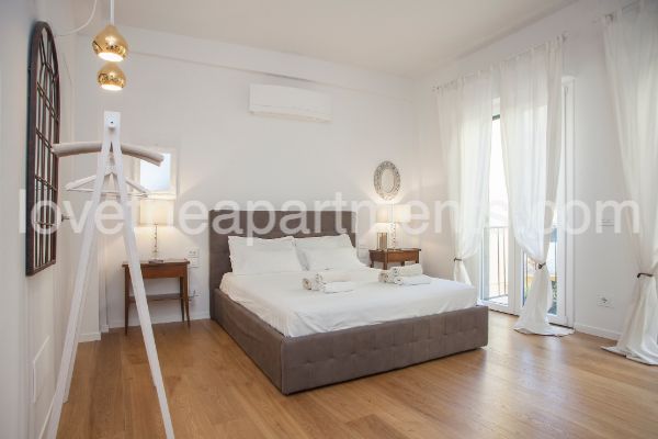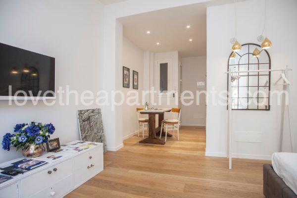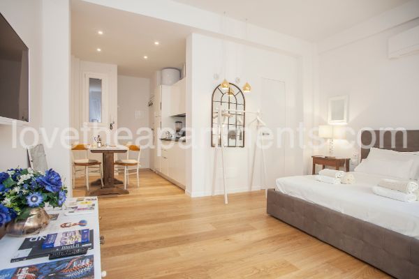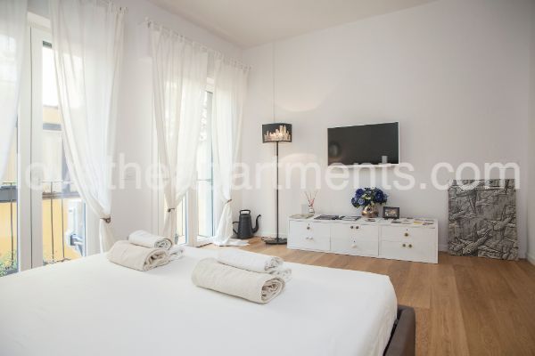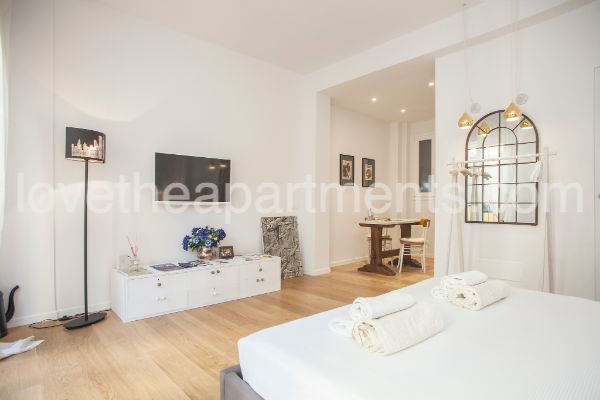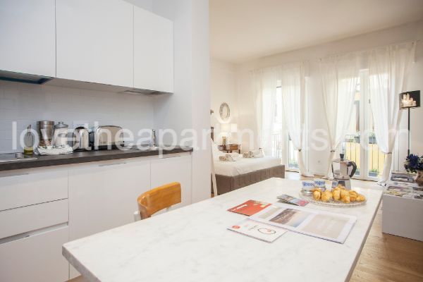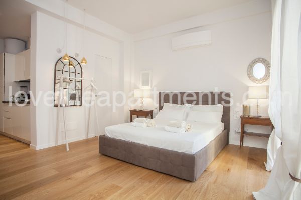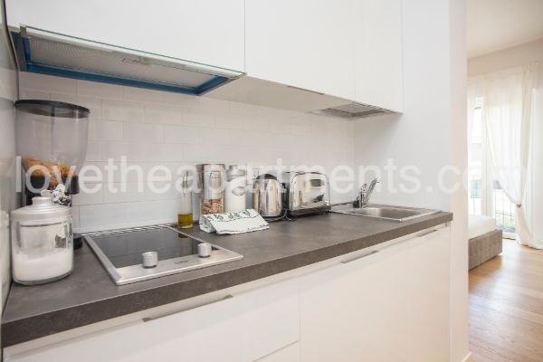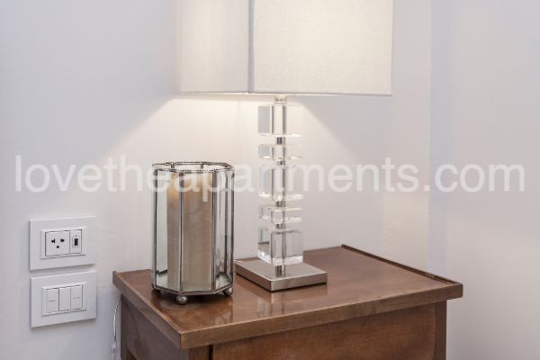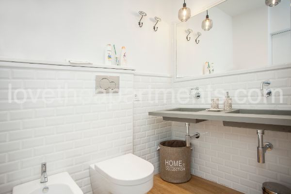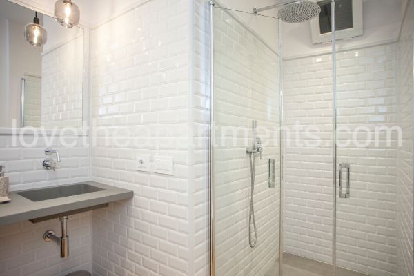 Loving the Italian furniture materials of this apartment such as the lighting system, the oak wood parquet and ceramic tile, enjoy a pleasant rain shower after a day of sightseeing in the wide shower box.
